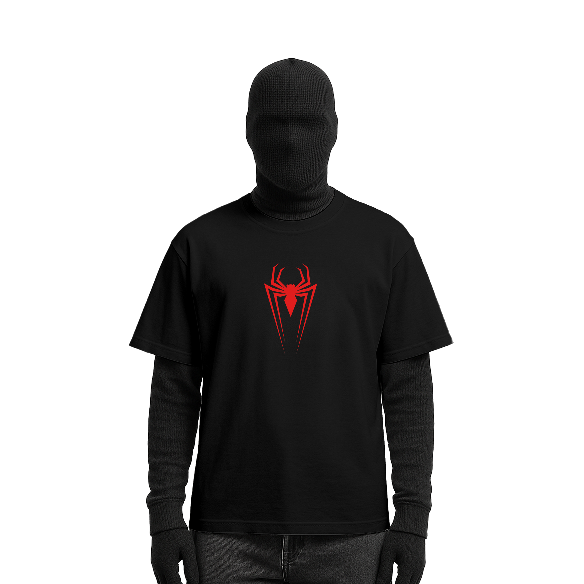 This oversized black tee channels the spirit of resilience and the unshakable will to rise again. The front features a striking red spider emblem, bold and centered, representing courage and responsibility. The back delivers the message loud and clear with Spider-Man swinging across the city skyline under the words no matter how many times I get hit, I always get back up. This piece is for anyone who refuses to stay down, a wearable reminder that true strength is measured by how many times you rise after the fall.