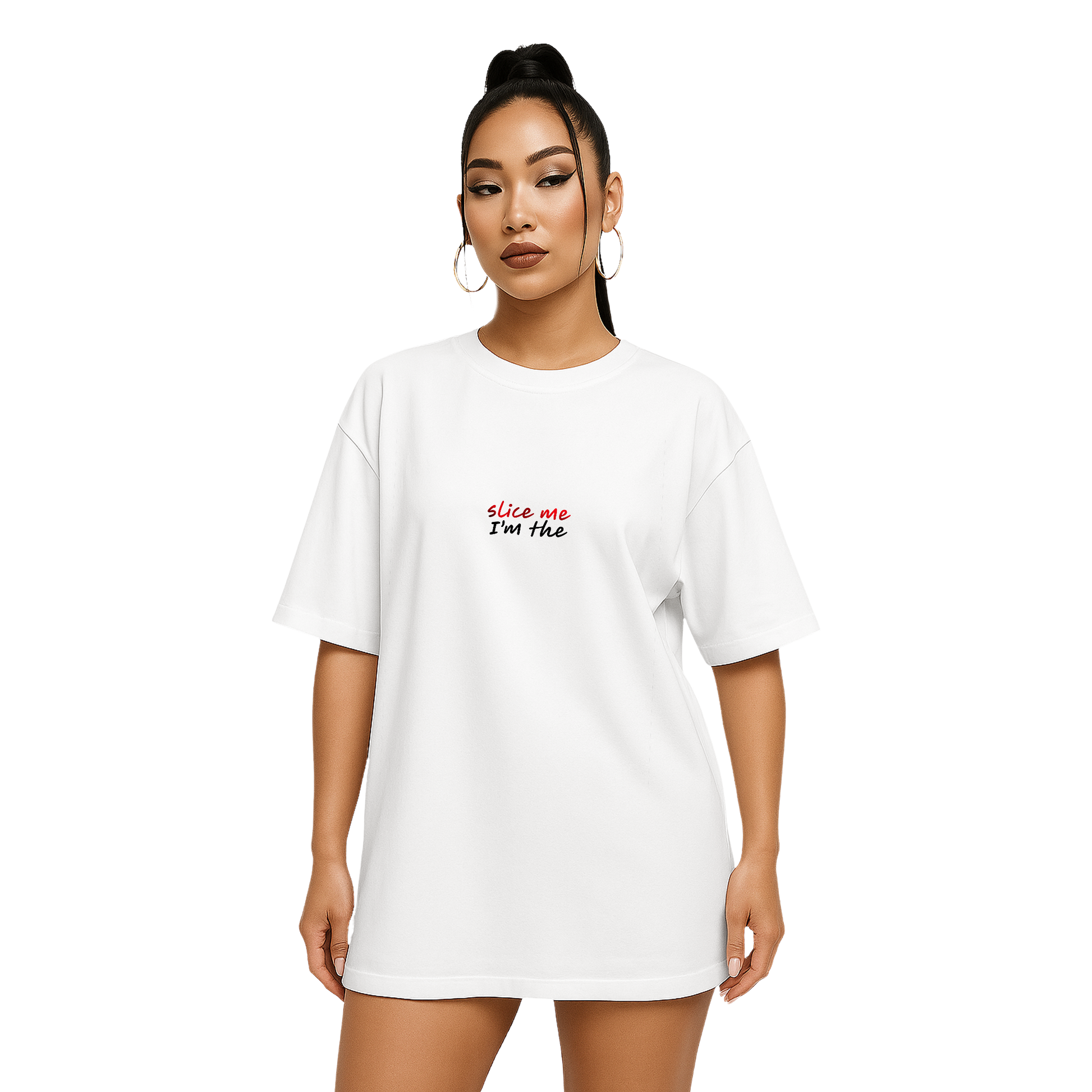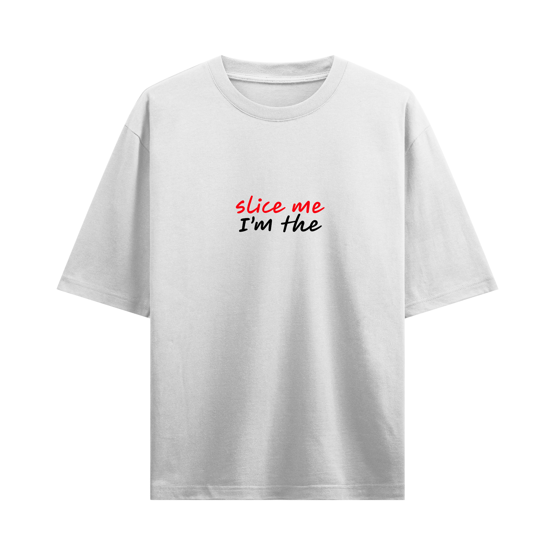 The front keeps it simple with “slice me I’m the” — the setup to a punchline everyone already gets.