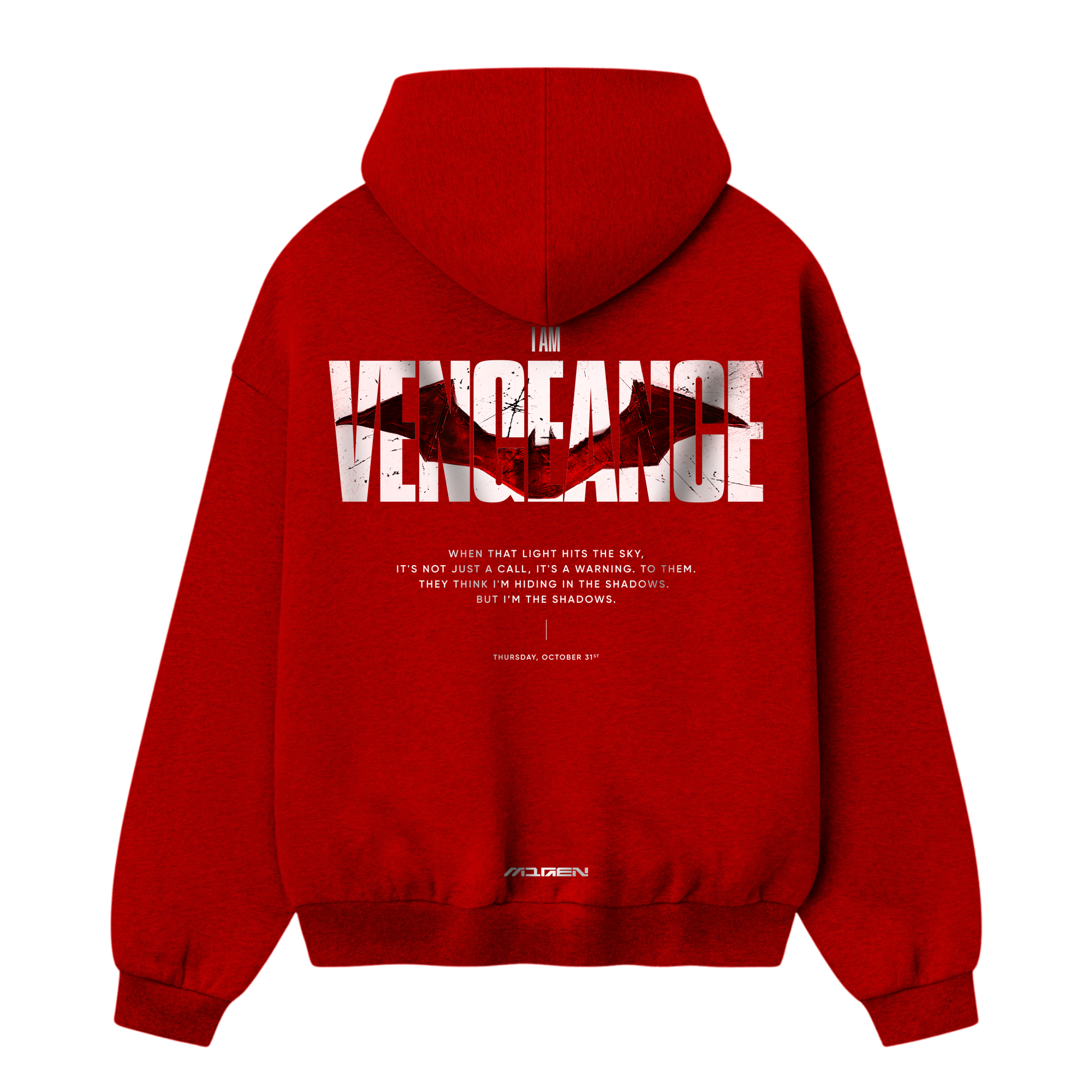 Unleash your dark side with the I Am Vengeance hoodie — a tribute to the myth, the symbol, and the shadow that strikes fear before it strikes back. Featuring a bold distressed typography set over a crimson silhouette, this piece captures the raw grit of a vigilante rising from darkness. The quote beneath marks the transformation: a call answered not by a hero, but by a warning. Heavy, atmospheric, and unapologetically iconic — this hoodie is built for those who walk in the night but stand for their own justice.